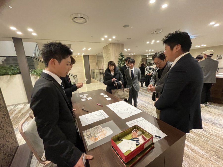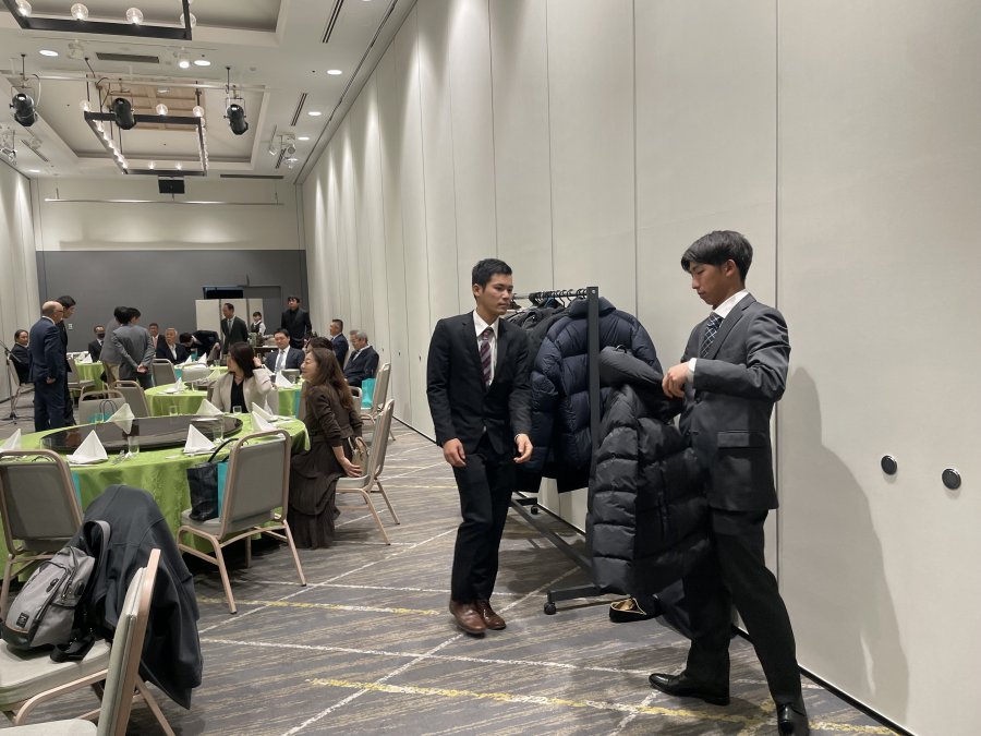 若手社員たちが、受付やクローク係などを担当。ぎこちない手つきではありますが、一生懸命頑張ってくれましたね。